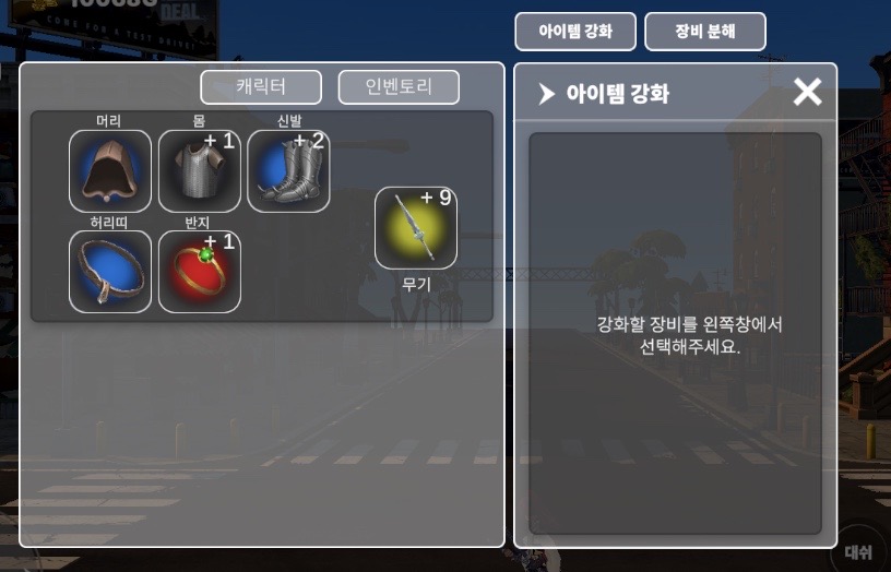첫번째는 대장간의 아이템강화 버튼과 장비 분해 버튼을 담당하는 기능이고
